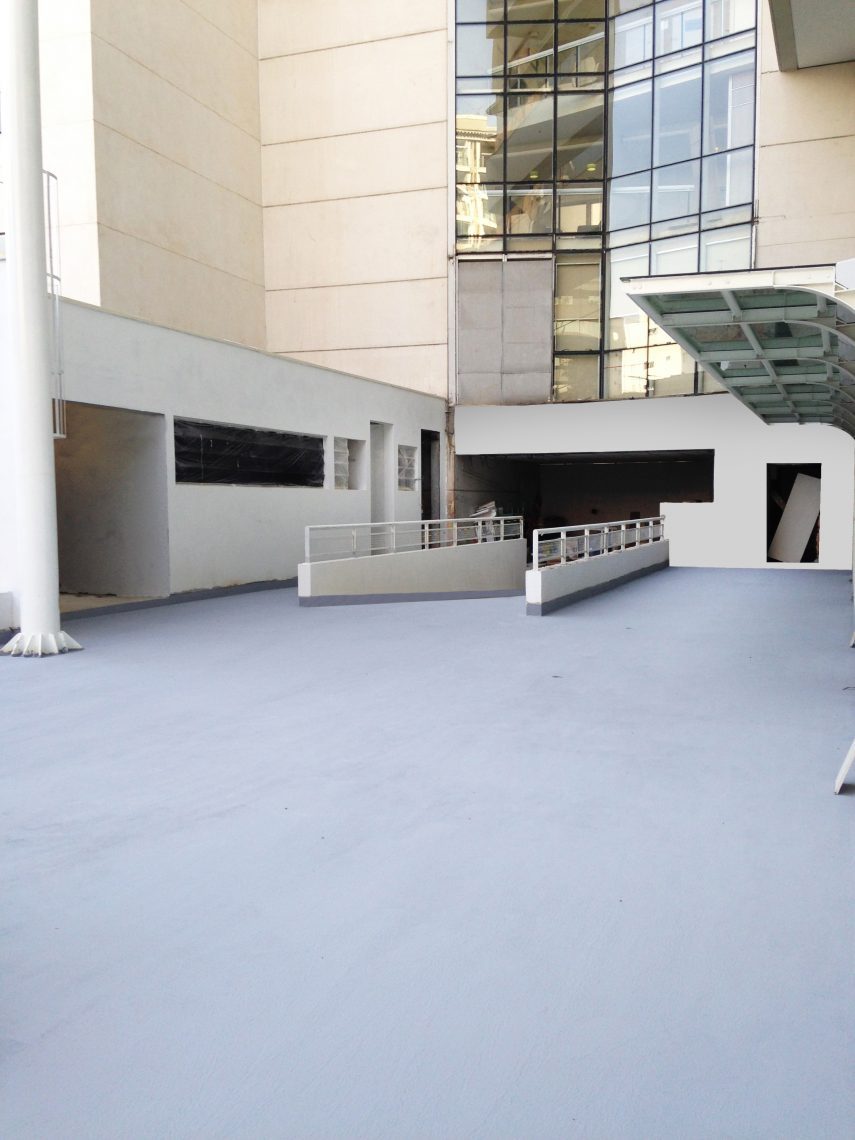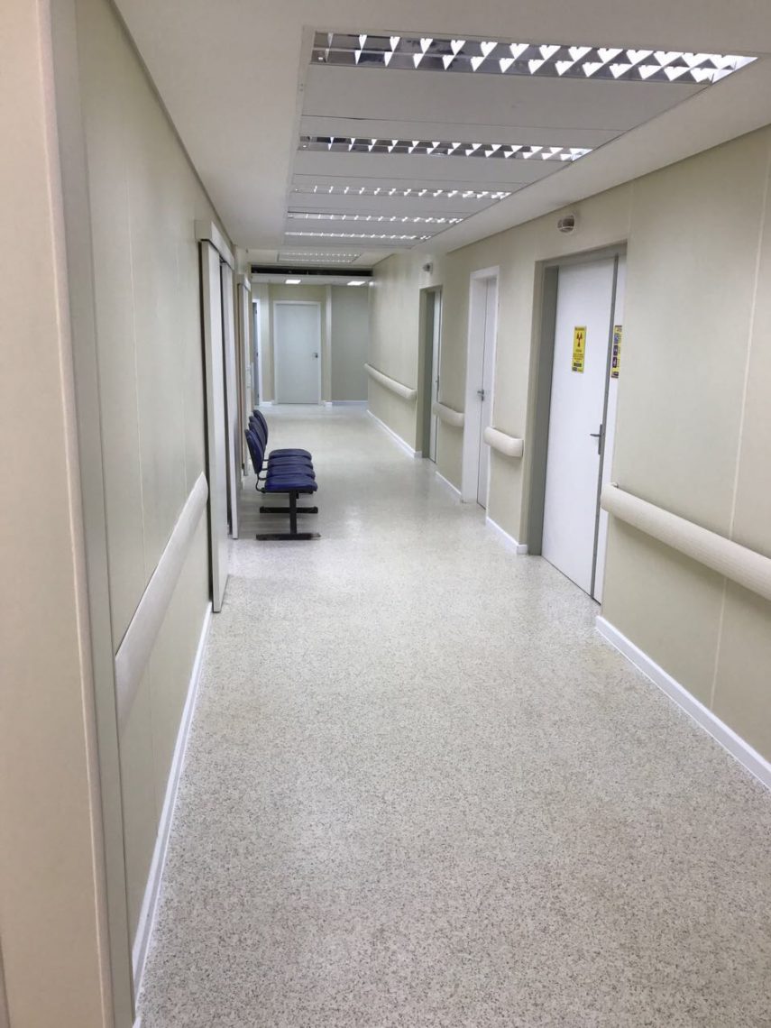 Revestimento aplicado em camadas sucessivas de resina epóxi, de acordo com a especificação de resistência necessária, recebendo uma pintura na cor desejada como acabamento.